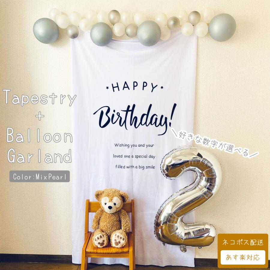 あすつく 誕生日 飾り付け 飾り タペストリー バルーン ガーランド セット おしゃれ 飾りつけ 風船 1歳 2歳 3歳 男の子 女の子 数字が選べる シルバー Tap Hbd 001 Opterminus Store 通販 Yahoo ショッピング